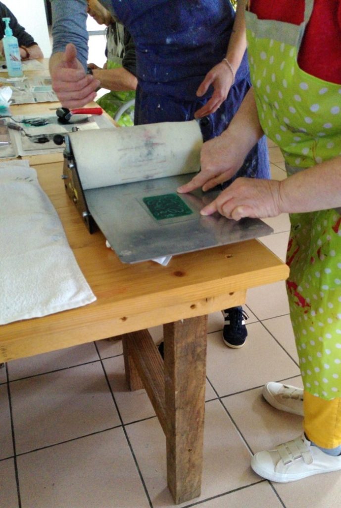 Du 11 au 15 avril, l’artiste plasticienne Alexandra Lafitte-Cavalle est intervenue auprès des résidents pour des ateliers monotype et collage.