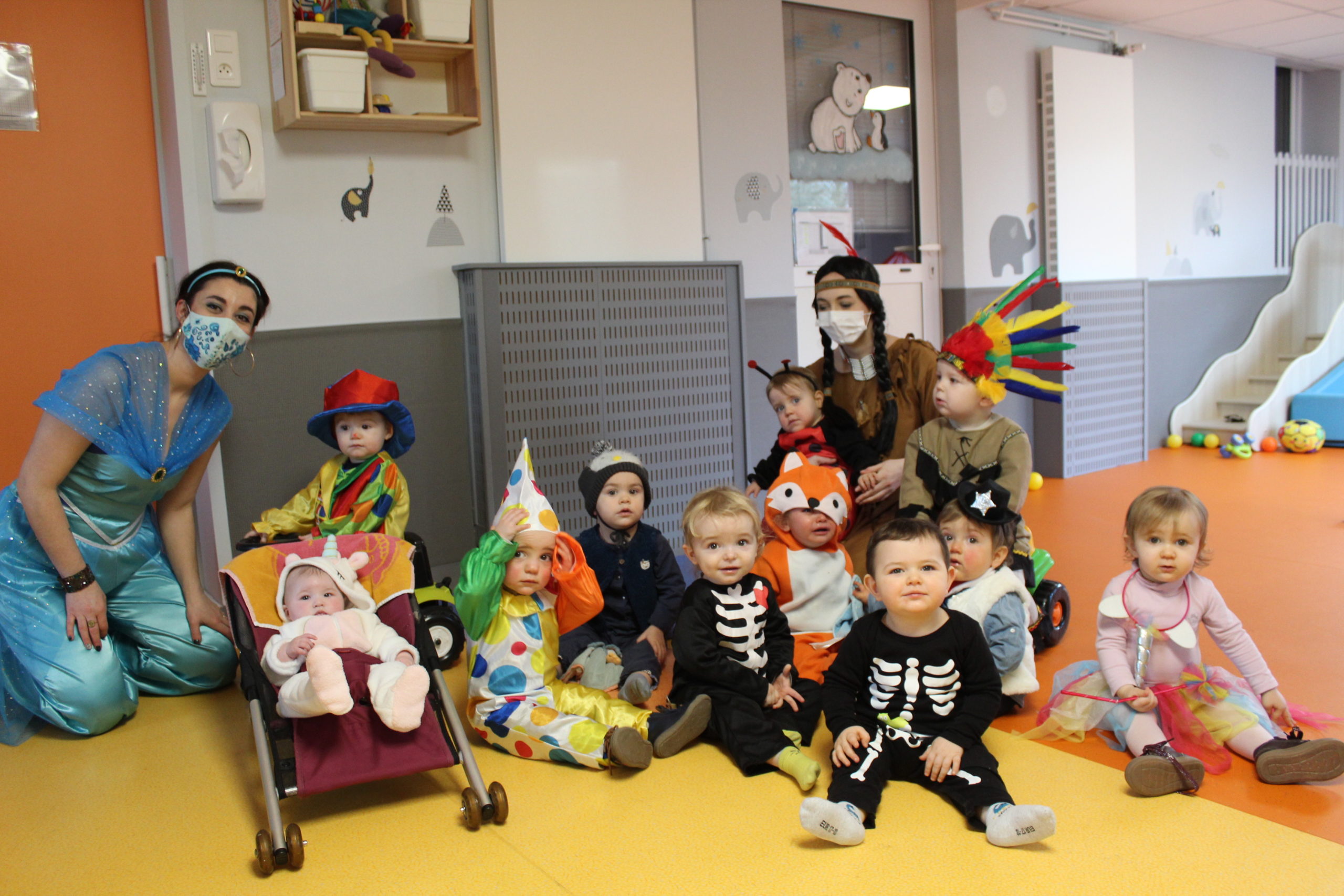 A l’occasion de mardi gras, l’ensemble des enfants de la crèche et l’équipe ont fait la fête : déguisement, musique et danse partagés tous ensemble.
